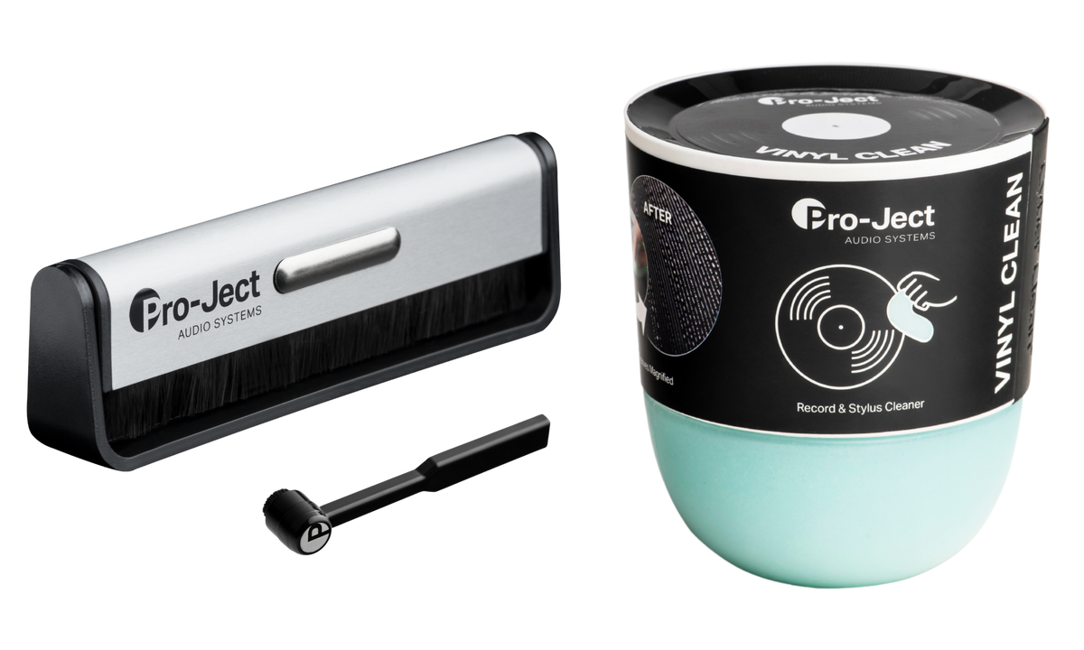 Our Cleaning Kit contains three of the most important cleaning tools that any collector will need; a Pro-Ject Brush It record brush, a Clean It stylus brush & the Vinyl Clean compound.
